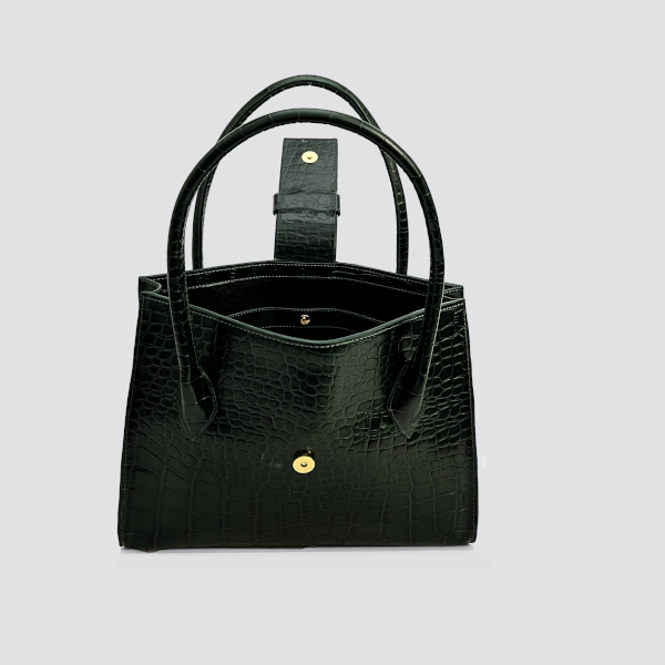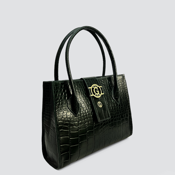 This iconic croc embossed giottoavelli alux bag is characterized by its sophisticated simplicity. The mid-flap closure decorated with the large and mini gold-tone G logo
