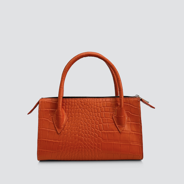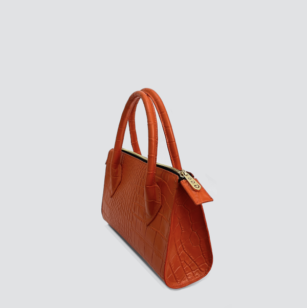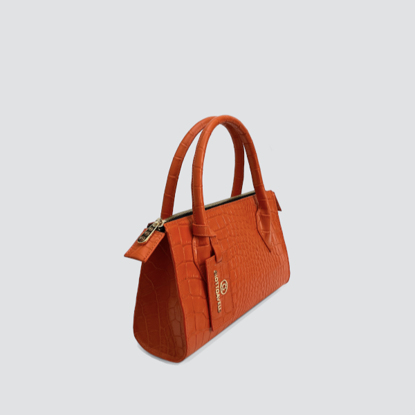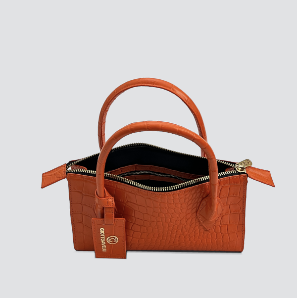 A new interpretation of styled in luxury, a beautiful orange croc embossed mini bag is made of innovative and quality Italian leather. The accessory with zipper closure and with logo tag is decorated with the iconic metallic mini-G logo.